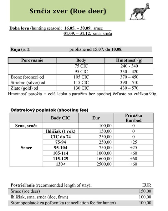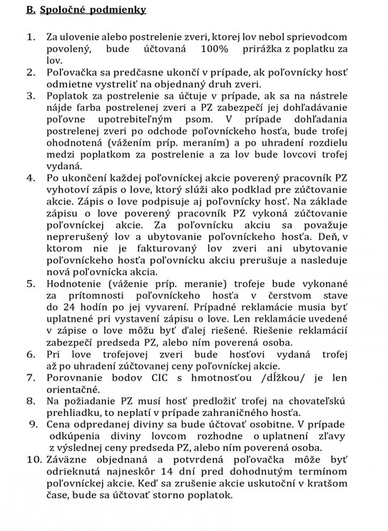Podmienky pre poplatkový lov , objednávku a ceny lovu si môžete stiahnuť vo formáte pdf -