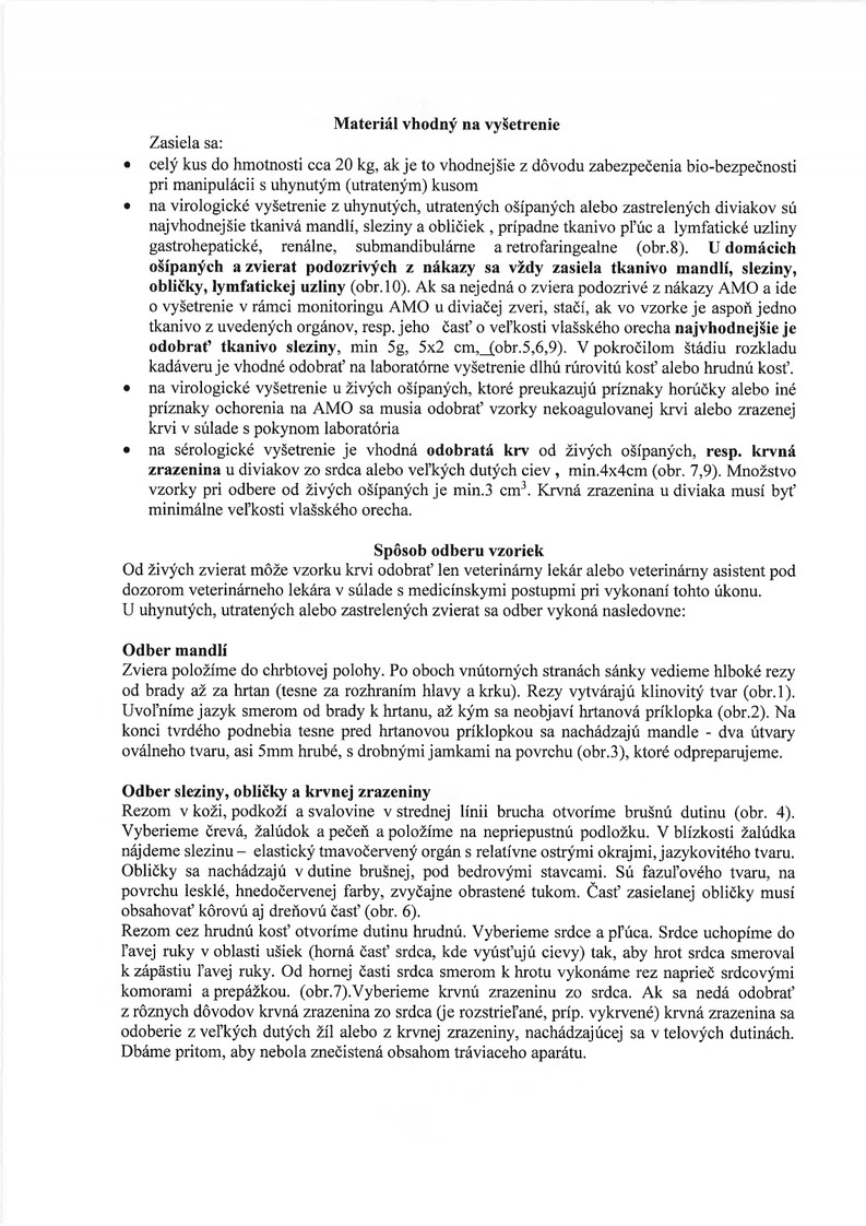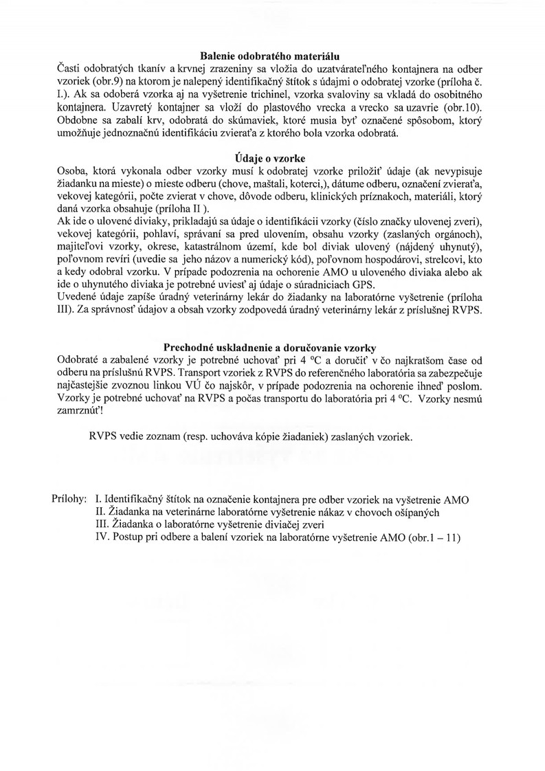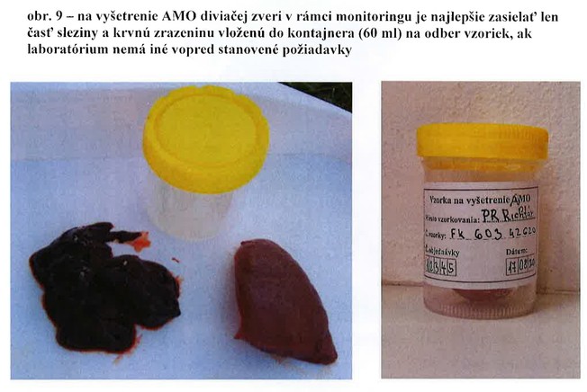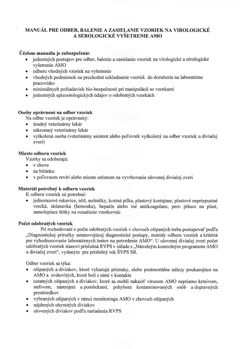 Postup pri odbere a balení vzoriek na vyšetrenie AMOŽiadanka na laboratórne vyšetrenie diviačej zveri - formát PDF (acrobat reader) Identifikačný štítok na nádobku - formát PDF (acrobat reader)